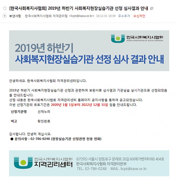 2021년 선재누리 학기 중 사회복지현장실습 실습생 모집 안내