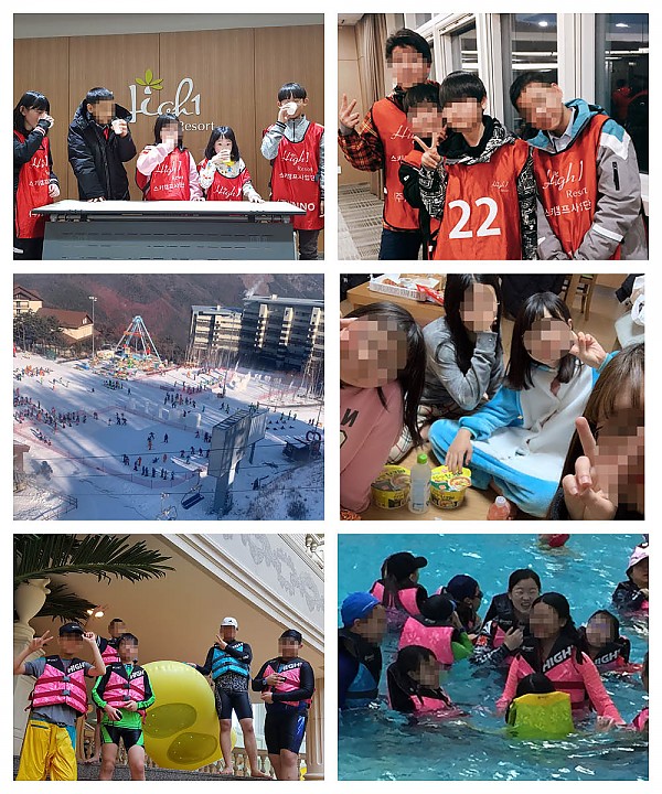 입주자녀들이 겨울방학 기간에 동계 캠프에서 스키, 워터월드 체험, 재미있는 레크레이션을 통하여 자연과 친구들과 하나되어, 학업으로 인한 스트레스를 해소하고 사회성과 소통을 통하여 꿈과 희망을 키우는 시간을 가졌습니다.
