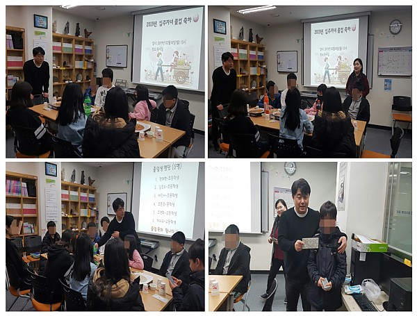 입주자녀 중에 2019년 2월 졸업을 하는 학생 6명이 있어 졸업과 새학기 입학을 축하해 주었으며, 상품권 수여와 원장님 졸업 축하 말씀으로