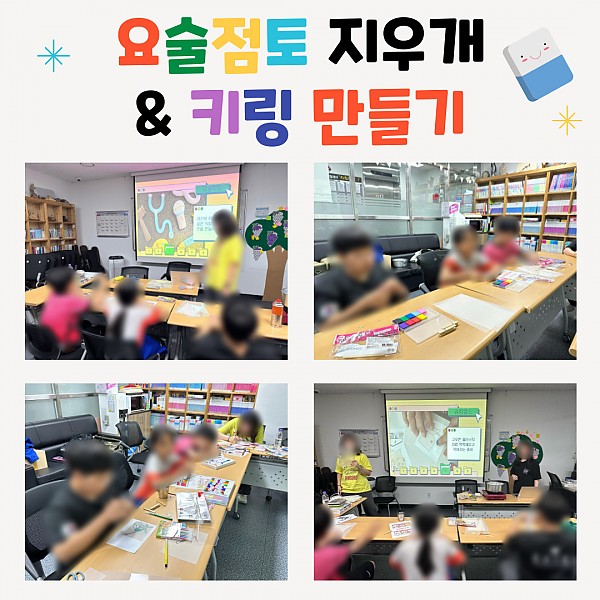 선재누리에서 여름방학을 맞이하여 진행하는 '여름날 우리' 프로그램 중 2회기를 진행하였습니다! 2회기는 요술점토 지우개와 키링 만들기를 진행하였으며 요술점토로 '나만의 지우개'를 만들어서 창의력과 상상력이 풍부해질 수 있도록 하였습니다! 또한, 본인이 직접 그린 그림을 키링으로 제작하고, 친구에게 선물해주는 활동을 통해 입주아동 간 친밀감이 향상될 수 있었습니다!