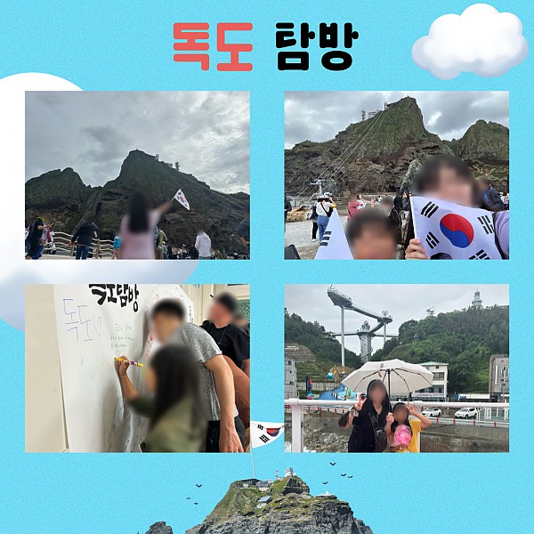 우리나라 땅인 독도의 역사에 대해 배우고, 직접 탐방하며 독도의 소중함을 알게 되었습니다. 또한, 자연에서 힐링하는 시간을 가지며 평소 학업으로 인하여 발생한 스트레스를 해소할 수 있었습니다!