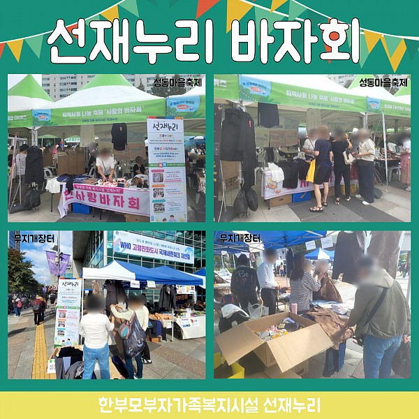 실시에 앞서 지역 내 복지관련 기관으로 부터 지원된 다양한 물품판매를 통해 지역사회 주민들에게 나눔과 후원의 기회를 부여 할 수 있었습니다. 또한 선재누리의 다양한 홍보와 더불어 한부모가족복지시설의 긍정적 인식을 재고 할 수 있는 소중한 시간이 되었습니다.