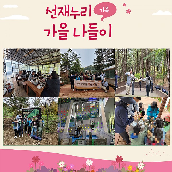 입주가족이 일과 자녀양육, 경제적 어려움으로 가족이 함께하는 문화체험과 여행의 기회가 부족하여 가을나들이를 통해 재충전의 시간을 갖도록 하여 삶의 활력과 가족간의 소통의 기회를 도모 하고자 하였으며, 쌓인 스트레스를 해소하고 아버지와 자녀가 여행을 함께하며 가족의 소중한 의미를 알고 가족관계가 증진 되도록 하였습니다.