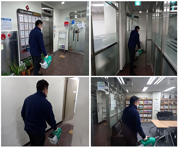선재누리에서는 코로나-19 감염병 예방과 입주자 안전을 위하여 매주 월, 수, 금(식당, 화장실, 독서실, 복도, 건물 주변 등) 자체 방역을 실시 하고 있습니다. 또한 입주가족의 철저한 개인 위생 관리 및 시설내 마스크 착용, 외출 및 외박 자제, 사회적거리 두기에 동참하는 등 입주가족과 지역주민의 안전을 위한 노력을 기하고 있습니다.