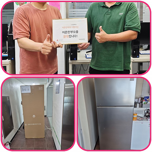 ‘지파운데이션’과 ‘경기공동모금회’에서는 한부모 가정을 위한 다양한 지원 사업 중 「바늘이야기」라는 사업을 통해 선재누리에 거주하고 있는 가족에게 생활가전(냉장고)을 지원해주셨습니다.