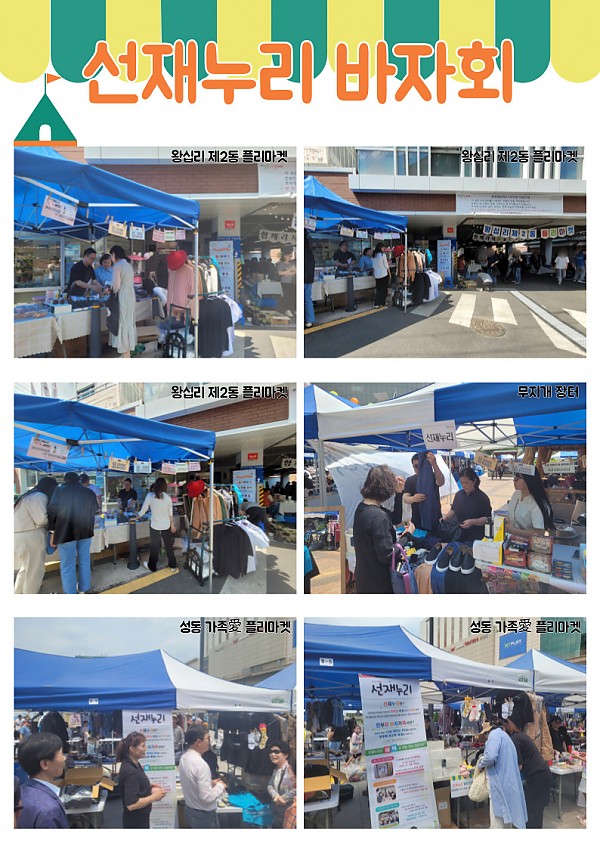 상반기 바자회를 개최 할 수 있도록 여러 도움을 주신 복지기관에 깊은 감사의 말씀을 올리며, 앞으로도 다양한 후원기금 마련과 시설 홍보를 통해 선재누리 발전에 기여 할 수 있도록 노력하겠습니다.