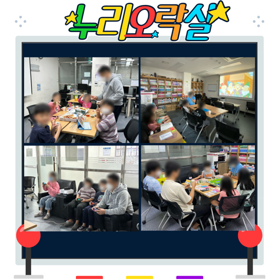 ★내용: 선재누리 입주아동을 대상으로 매달 첫째주 토요일마다 ‘누리오락실’을 진행하였습니다. 게임을 진행하기 전에 스마트기기 교육 영상을 시청하여 아이들이 스마트폰, 컴퓨터 등을 보다 효율적으로 사용할 수 있게 하였습니다!